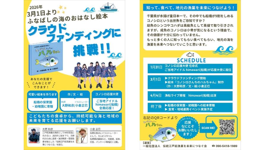 船橋の海に生きる魚「コノシロ」を主人公にした絵本制作を軸としたクラウドファンディングを開始いたしました。